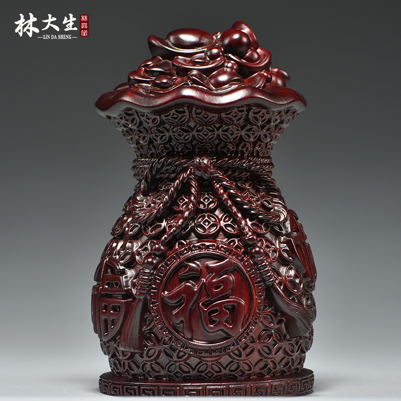 黒檀木彫刻福袋置物代代金持ち客間玄関酒場飾り工芸品店開業プレゼント