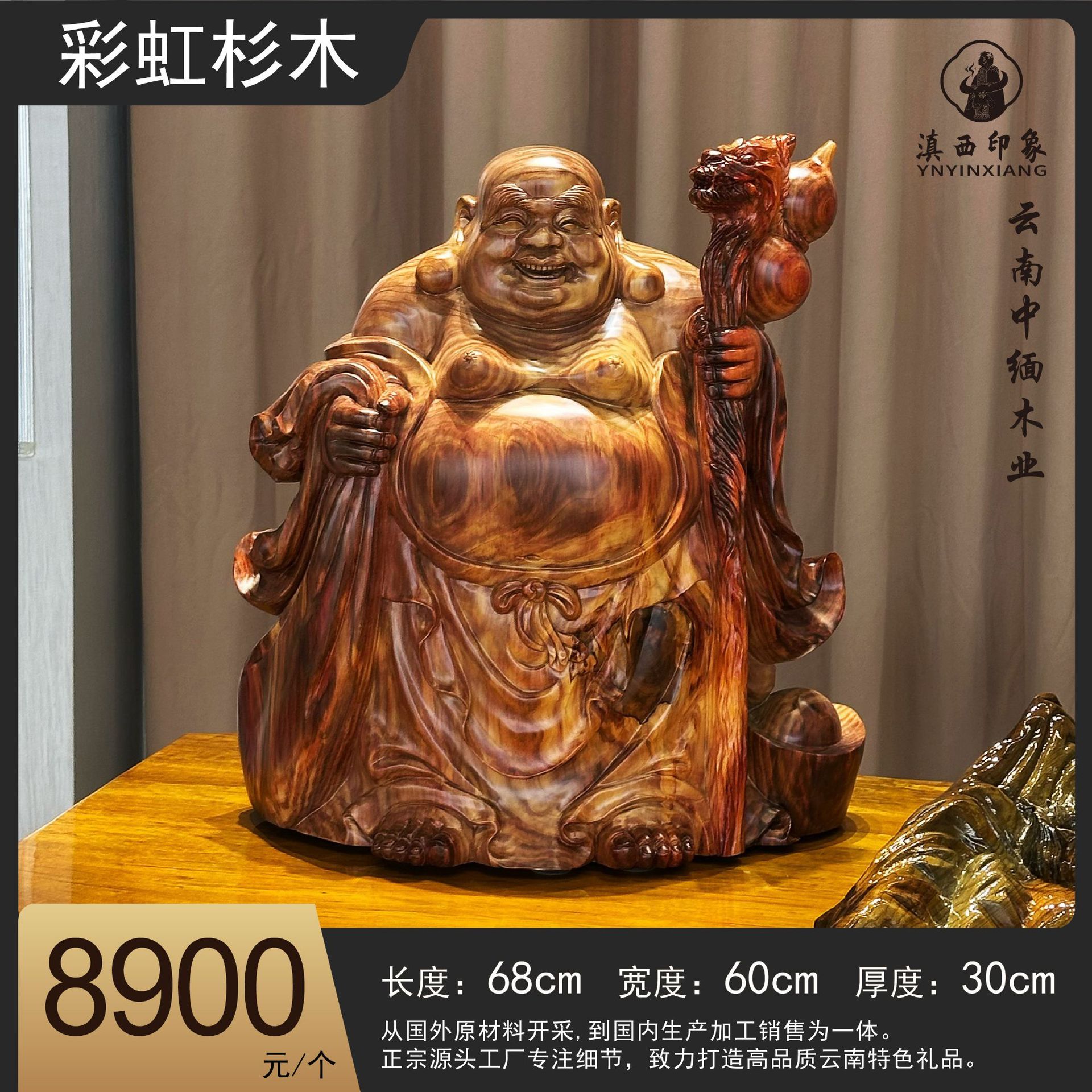 虹杉大赤酸枝精工彫刻純実木銭袋和尚プレゼント中堂置物