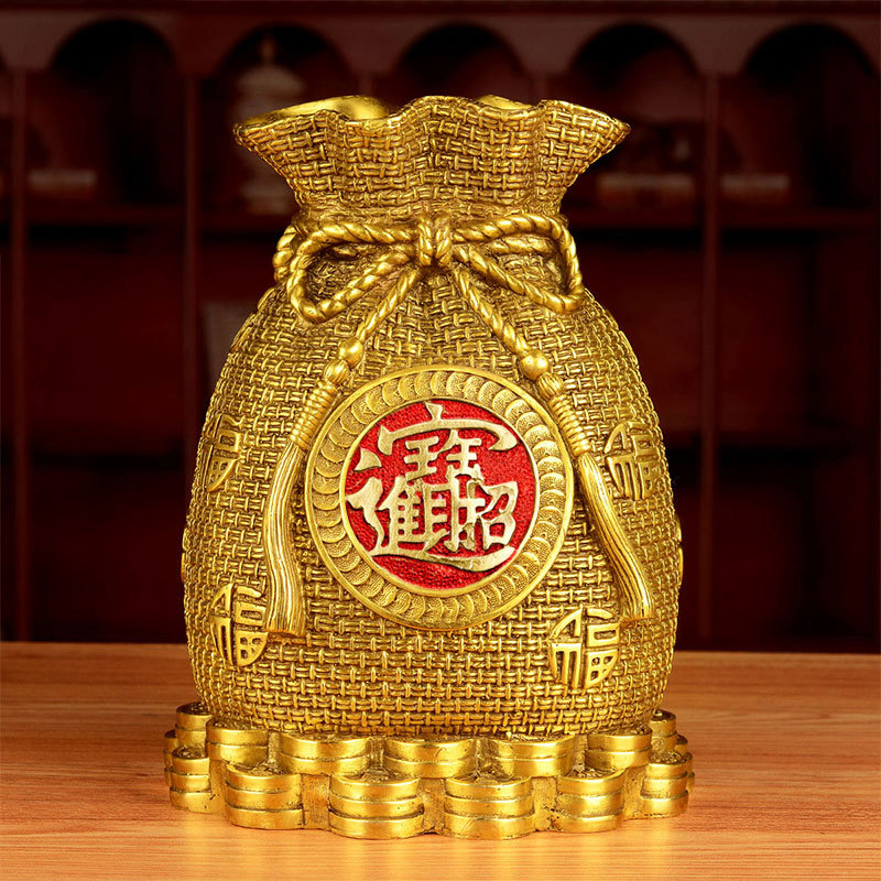 銅貯金箱福袋飾り真鍮米瓶マネーバッグホームリビングルームの装飾福袋貯金箱宝の壺