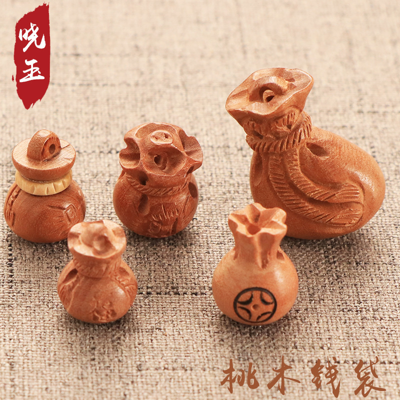 メーカーは桃木木彫り元宝袋ストラップ立体彫刻福袋小銭袋アクセサリーを提供しています。