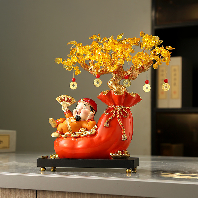 財神爺発財樹置物玄関客間デスクトップ招財装飾オフィスレジフロント開業プレゼント