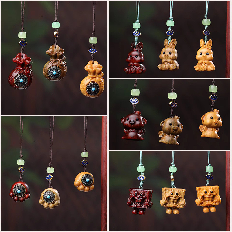 紫檀の緑檀の多いデザインの携帯電話のペンダントのキーホルダーの部品のアクセサリのバービー檀の手の部品のヒョウタンの12生肖