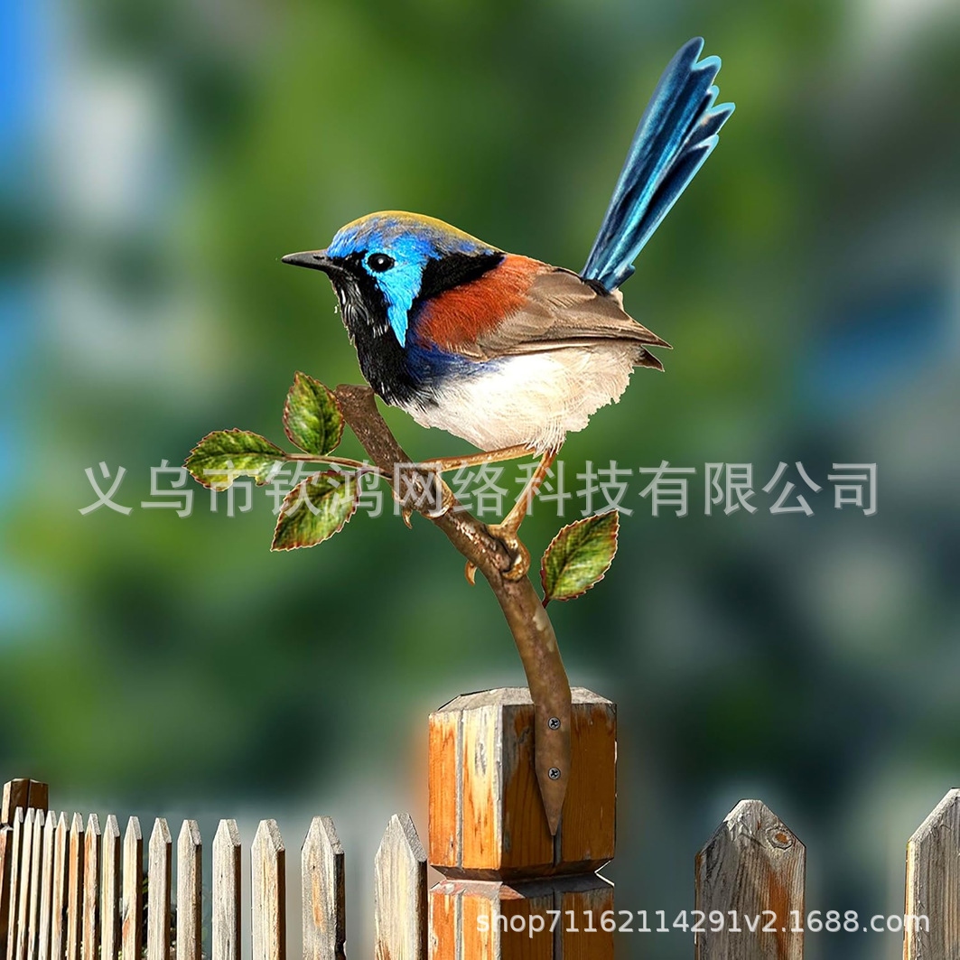 クロスボーダー平面印刷ブルーバードアクリルグラウンドフラワーガーデン屋外芝生装飾動物テーマ鉢植えフラワーアレンジメント