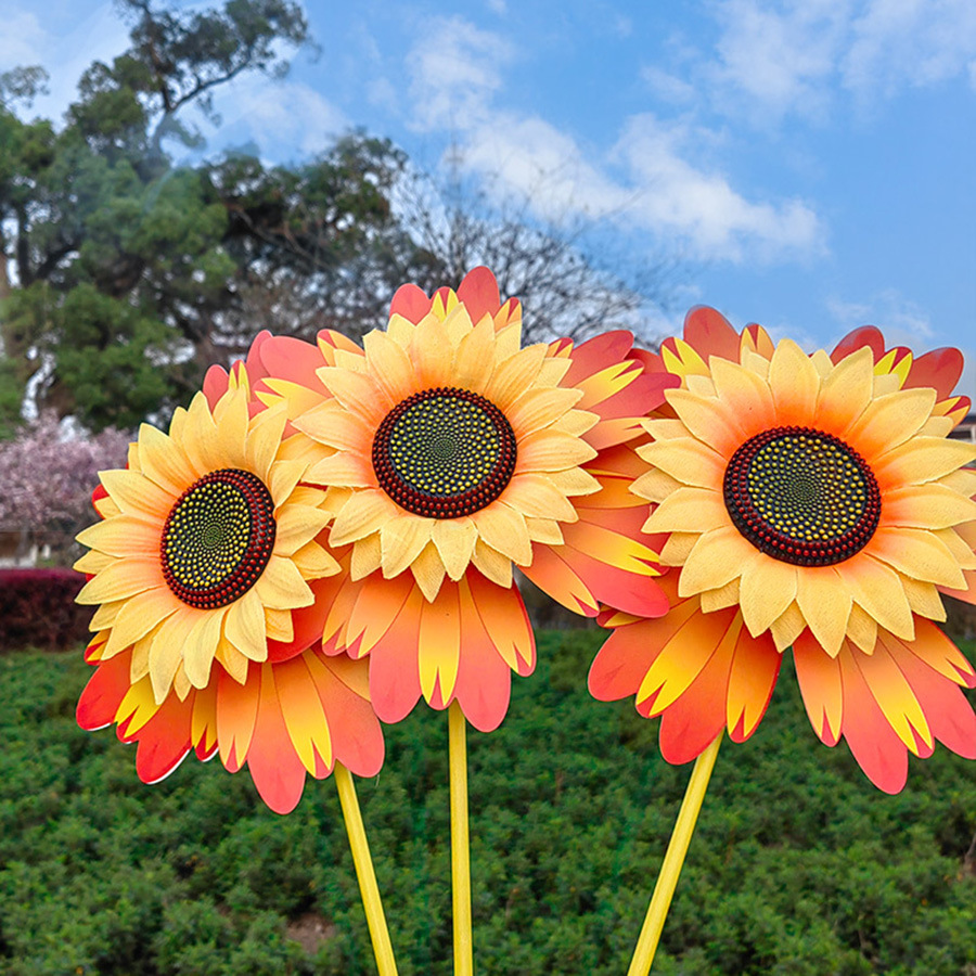 ひまわりの風車のガラス棒の太陽の花の庭は子供のおもちゃの風車の幼稚園の観光地区の花園の装飾を飾ります。