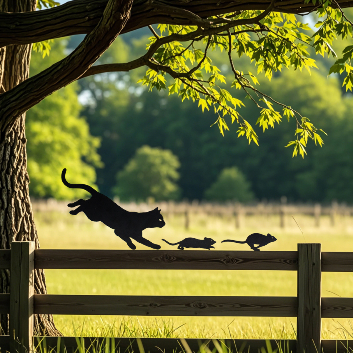 国境を越えた新しい製品鉄猫とネズミの追跡金属木の切り株装飾屋外中庭バルコニー庭フェンス造園装飾