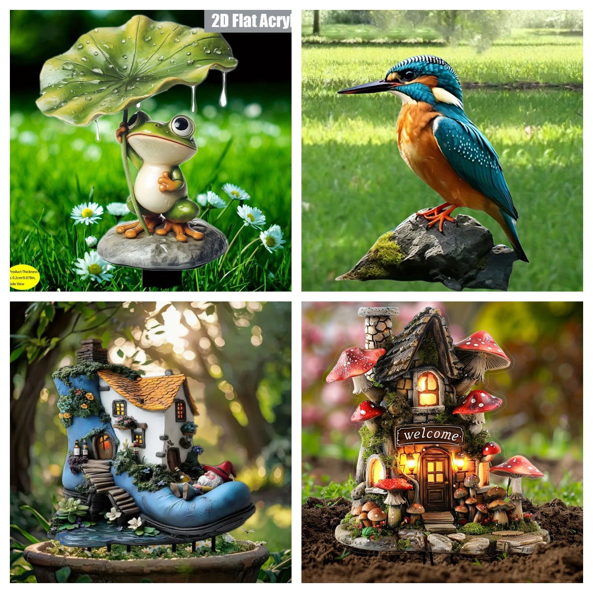 Amazon Elf 小動物 2D アクリル屋外芝生鉢植え装飾フロアプランター装飾美化小道具