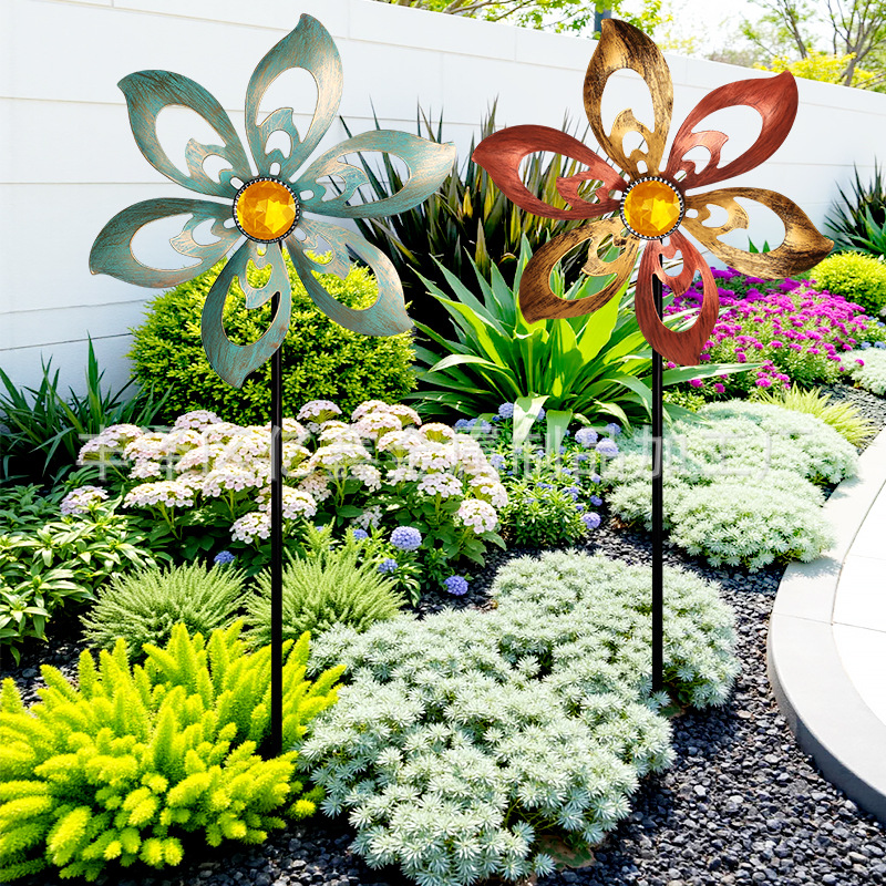 国境を越えた鉄製のレトロな宝石回転風車、屋外庭園の芸術装飾、テラス、芝生、田園に適しています