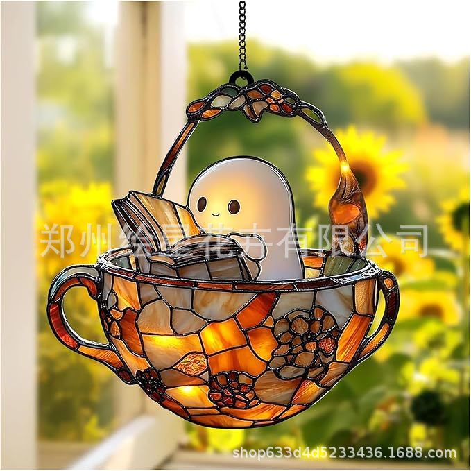 2025年クロスボーダーホットスタイルかわいいゴーストオーナメント手作りゴースト読書サンキャッチャーアートデコレーション用
