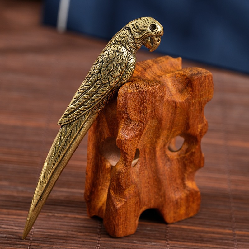 真鍮のオウムの茶刀は古茶餅の茶器をまねます。