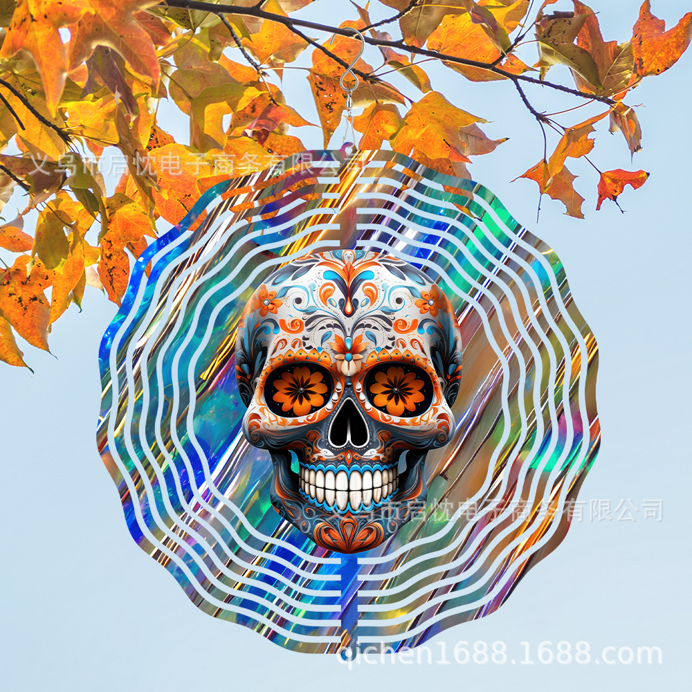 クロスボーダー人気フクロウ風旋器3Dダイナミック回転風鈴装飾金属ステンレス屋外風車ストラップ