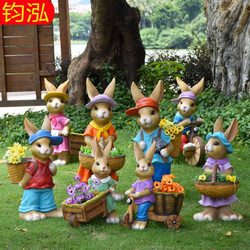 屋外庭園装飾飾り ウサギの植木鉢 幼稚園漫画風動物彫刻 庭園景観小品