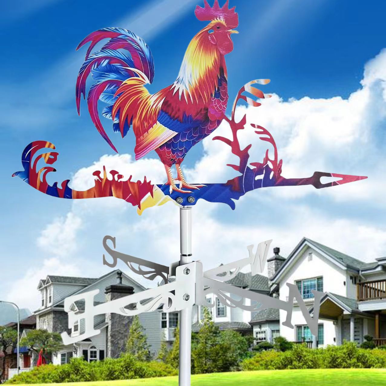 国境を越えた新商品、回転するカラフルな鶏の風向計、鉄製の鶏、屋外の庭や庭園の装飾、金属工芸品
