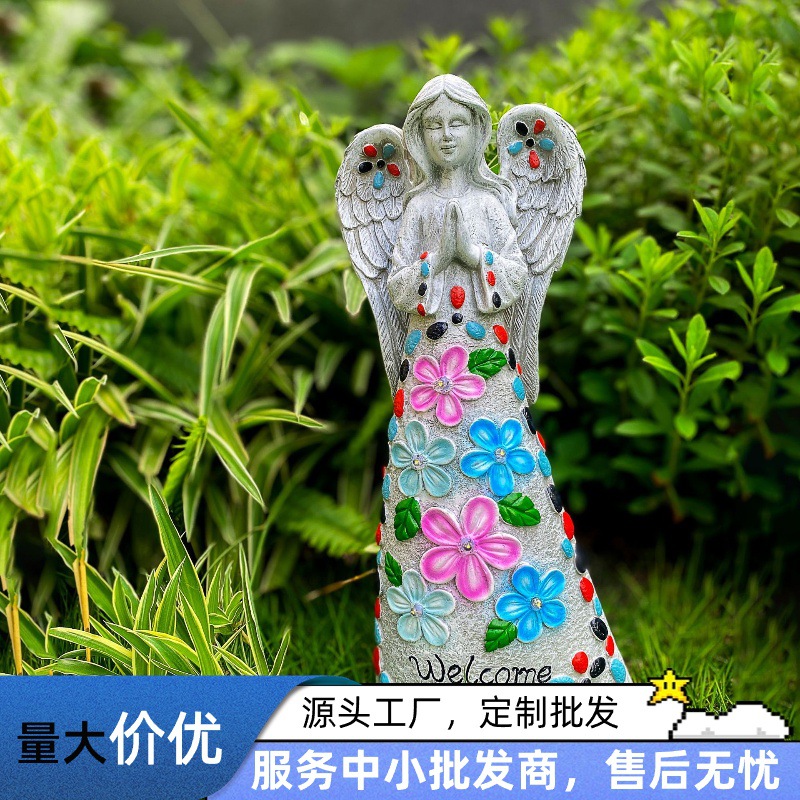 越境花園装飾置物庭園工芸品庭花仙子屋外太陽エネルギー天使像樹脂灯