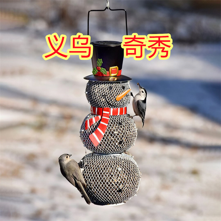 独立站新品 Ceana 雪人小鸟款喂鸟器户外挂件种子装饰喂鸟器