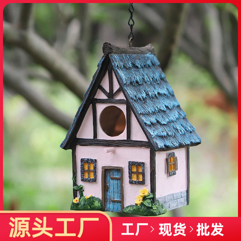 鳥の巣鳥の家の花園の装飾品は冬を過ぎて暖かい木を掛けて庭に樹脂の工芸品の置物を配置します。