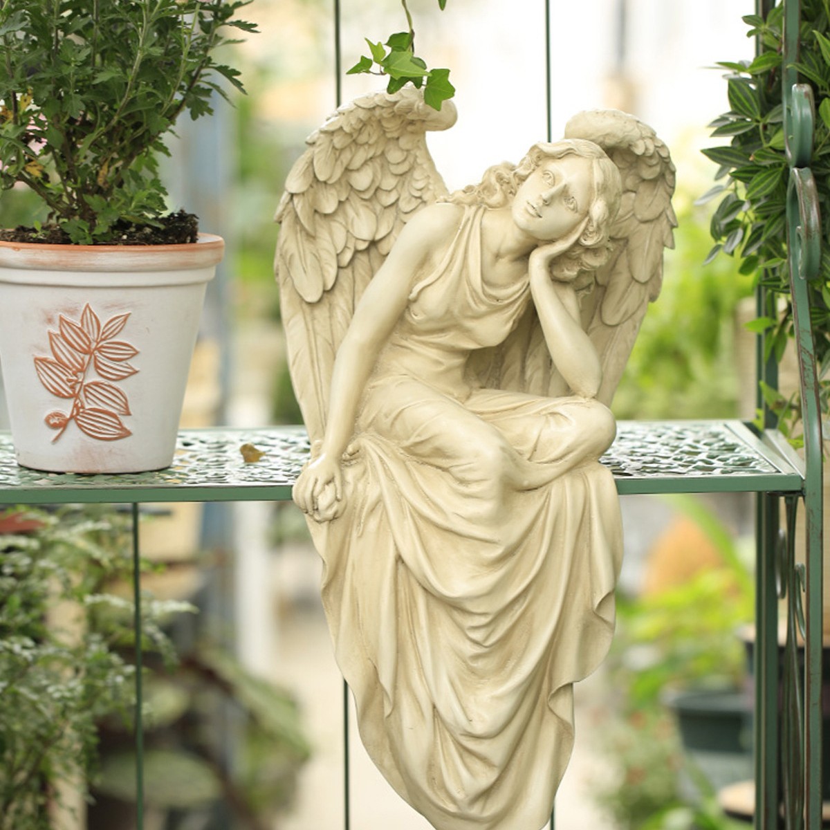 ヨーロッパのレトロな座り姿勢天使マーメイド中庭ガーデンバルコニー装飾装飾品樹脂像デスクトップ装飾品