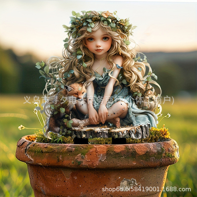 2D フラット ファンタジー エルフ ガールとキツネ アクリル ガーデン インサート - イースター フェアリー アウトドア デコレーション