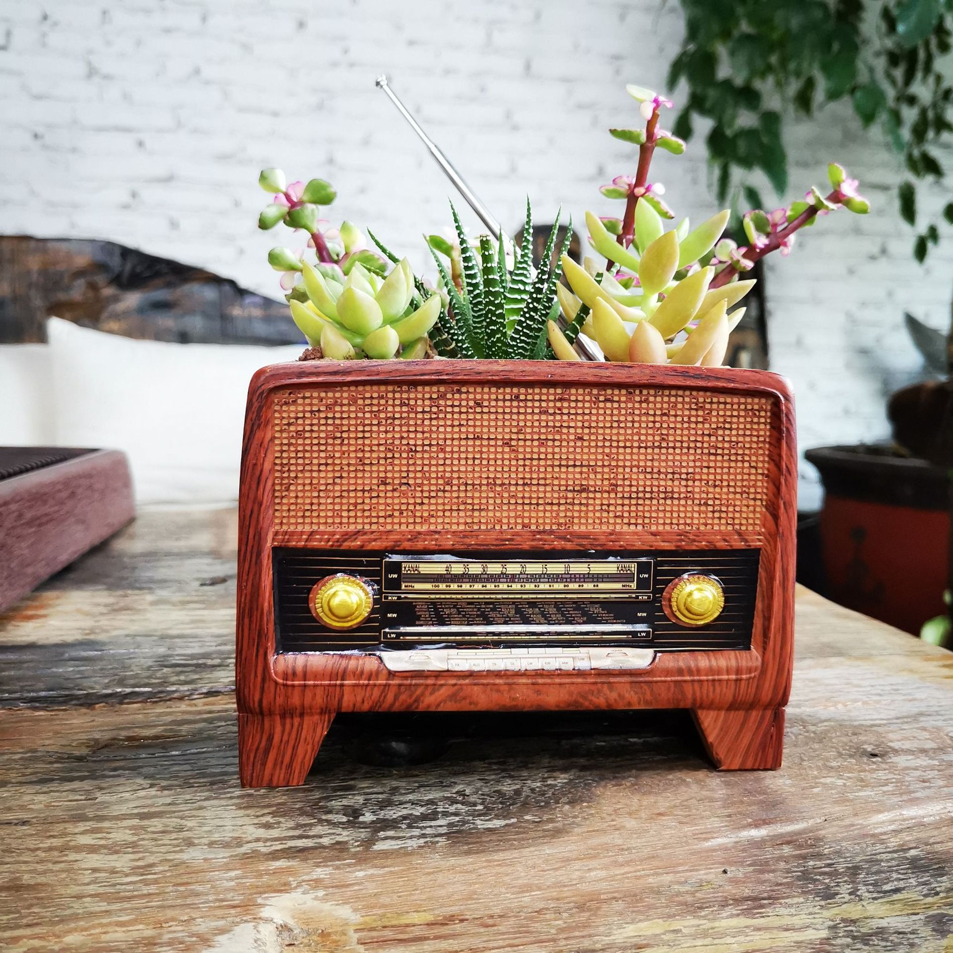新商品の中号のレトロなラジオの形の置物の植木鉢の家庭の個性の多肉の鉢植えの樹脂の工芸品の卸売り