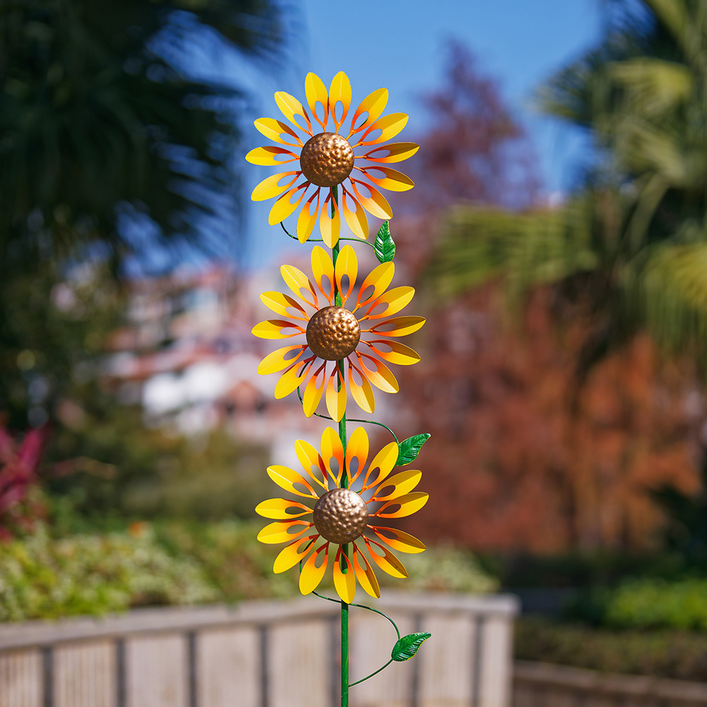 国境を越えて屋外庭園風車鉄芸ヒマワリ風車の暖かいアイデアが庭の別荘に飾られている