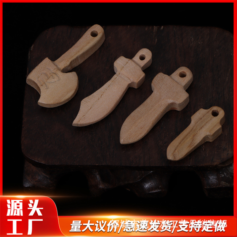 無味の薄い色の桃木の彫刻の小さい部品の刀剣の斧の如意は赤ちゃんのペンダントの部品のdiyを編みます。
