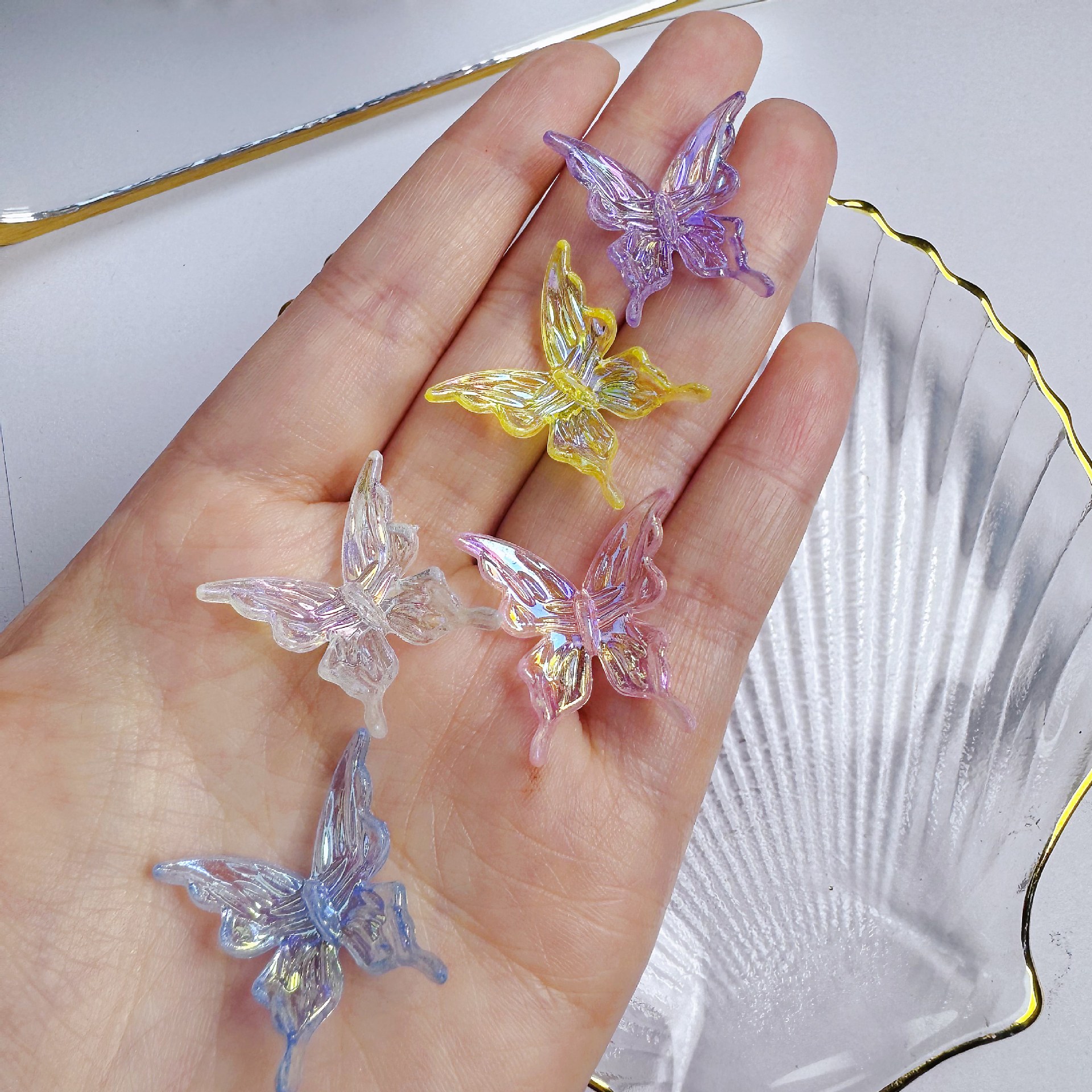 Xiaohongshu 人気のカラフルな混合蝶ネイルアートアクセサリー diy ウェアラブルネイルヘアピンイヤリングアクセサリー卸売