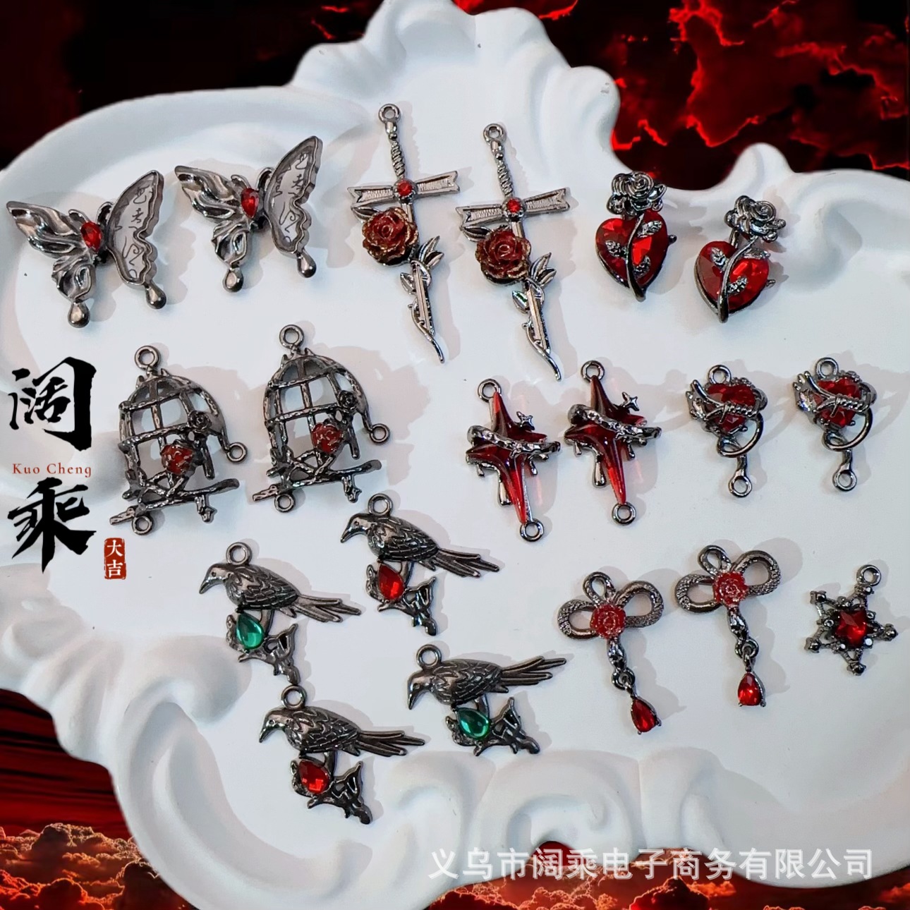 ダーク系アクセサリー 欧米風 ガンブラック 蝶 ローズ クロス ペンダント DIY ビーズブレスレット ネックレス