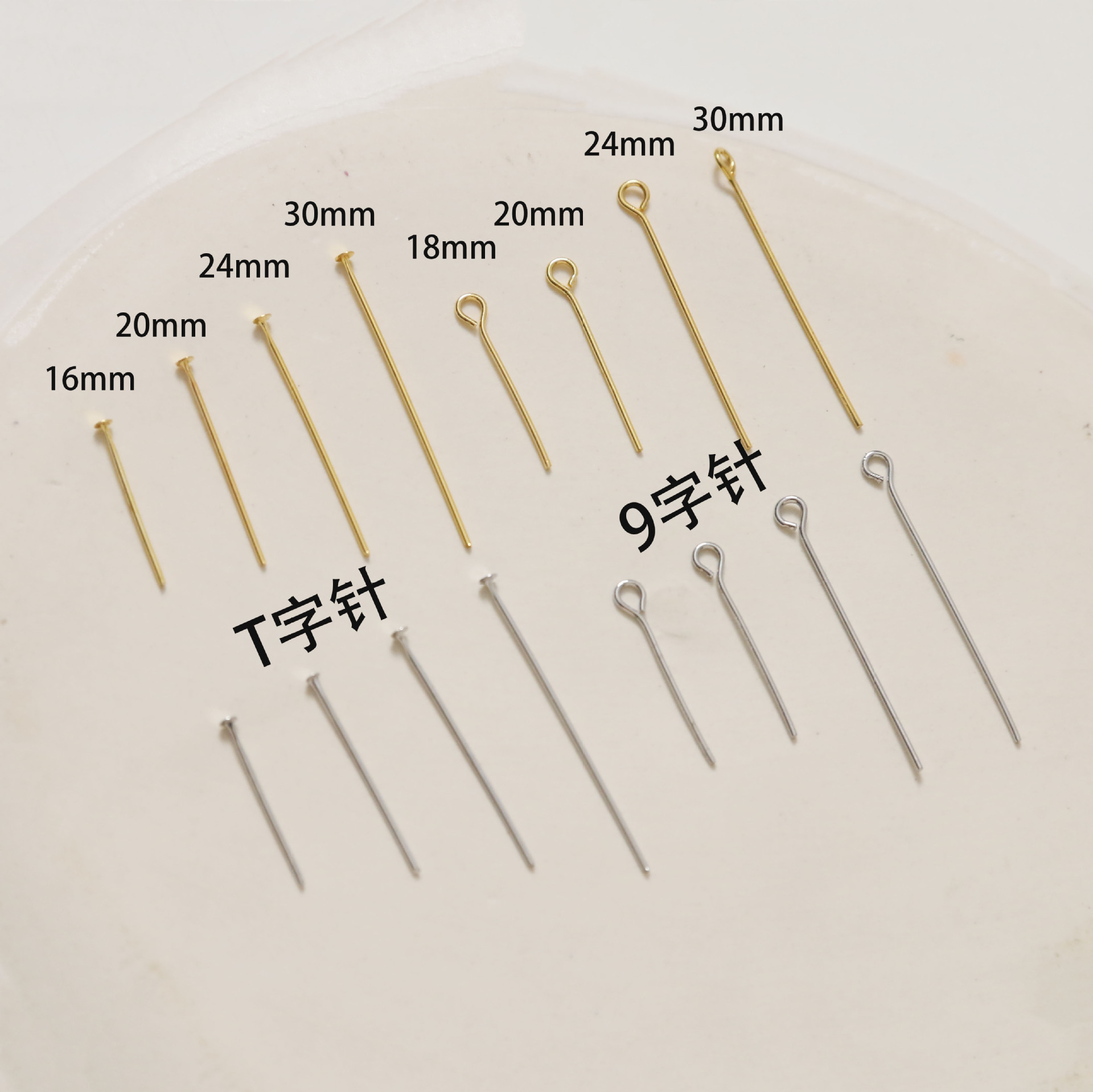 保色18k包金球形針丸頭珠針t字針9字針diy手作りビーズ針アクセサリー部品