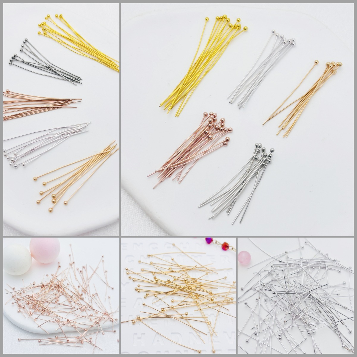 15mm-50mmボールニードル100本/バッグdiyイヤリングアクセサリーアクセサリー銅ボールニードルラウンドニードル古風ヘアピン材料