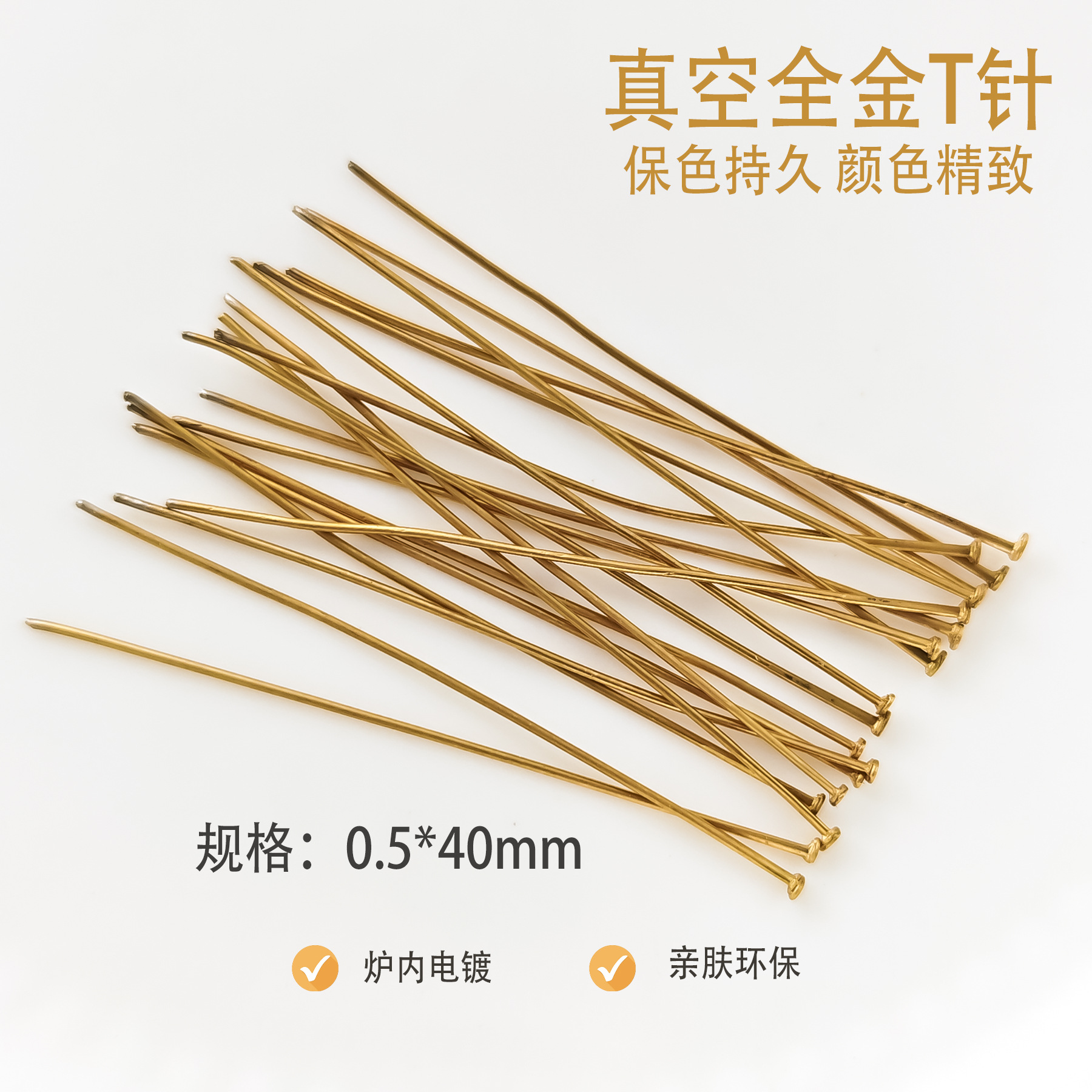 Diyアクセサリー部品保色厚メッキ14k金tピンアクセサリー材料平頭針多規格接続針