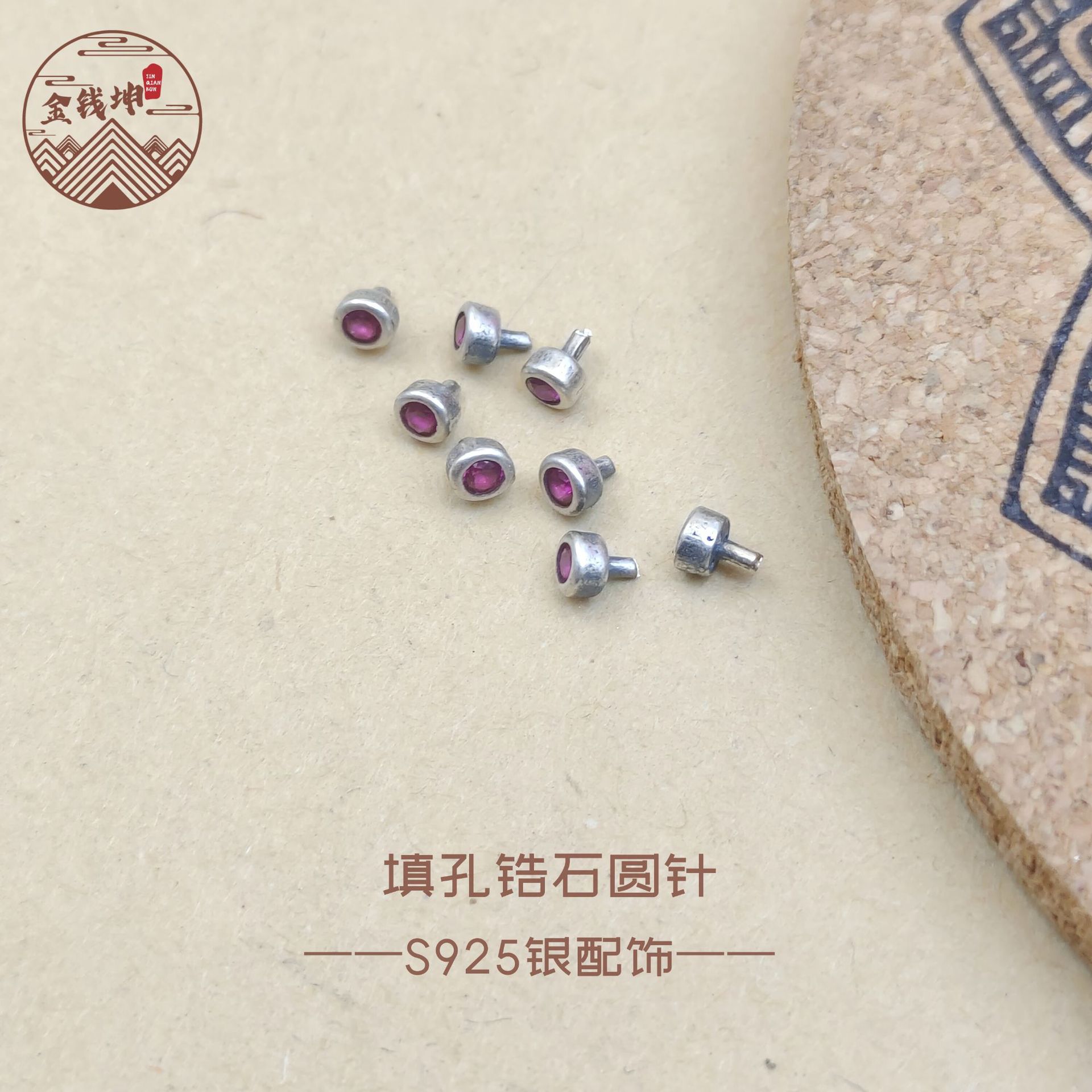 S925素銀長針付き吊り下げボタン部品吊り下げボタン手作りdiyアクセサリー卸売りs0697
