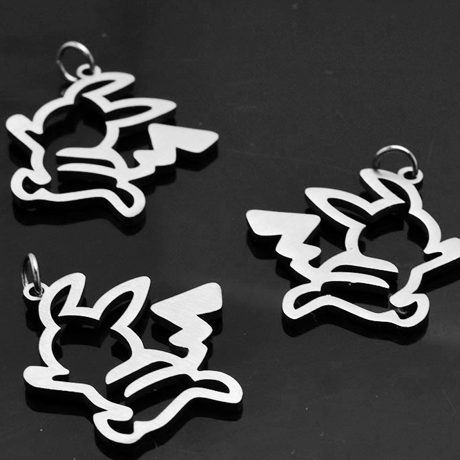 韓国の漫画かわいいステンレスのパンクのピカチュウの漫画の土のクールなネックレスの笑顔のかわいいカップルのペンダントの部品