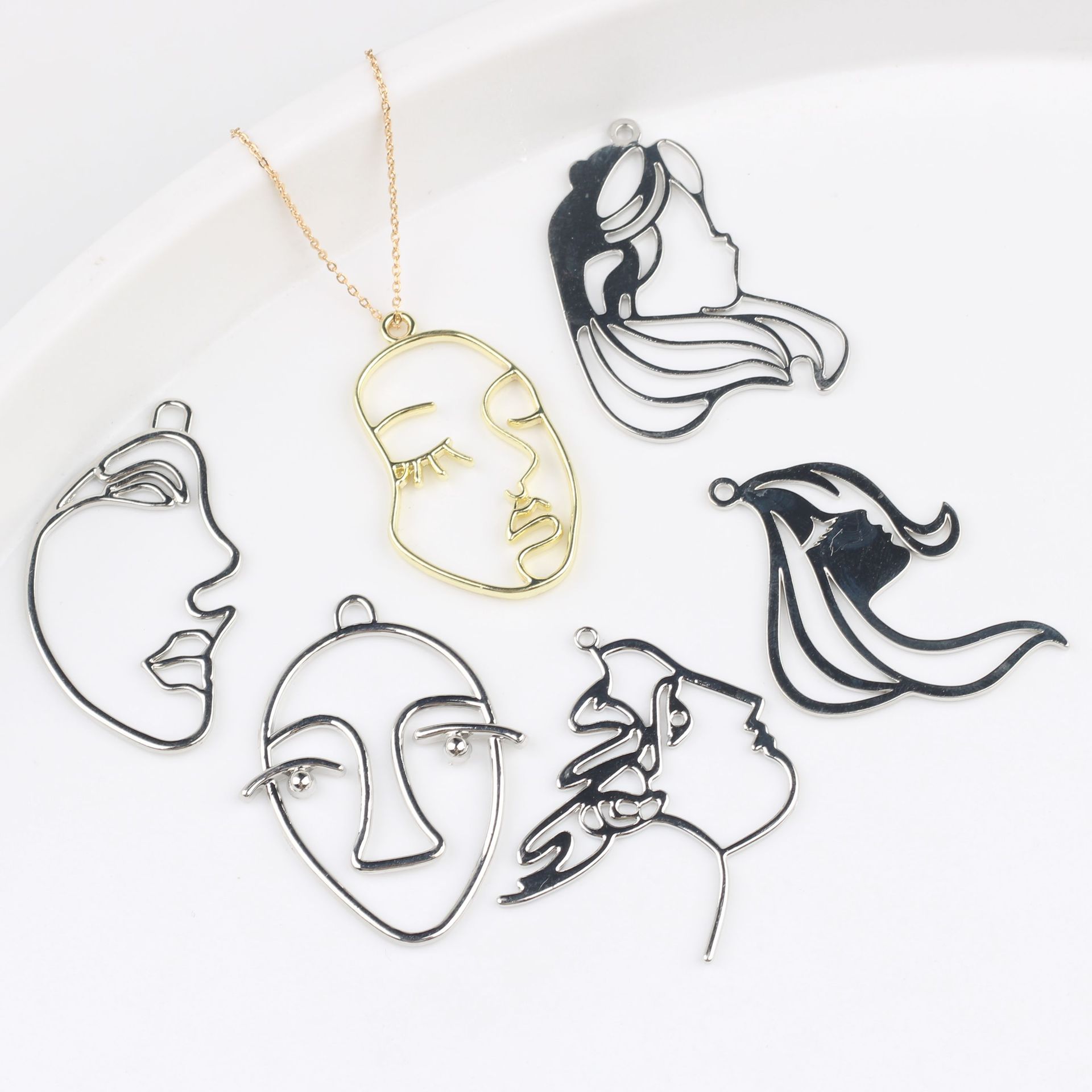 シンプルな合金ビューティーヘッドフェイスペンダントペンダントDIYブレスレットネックレスイヤリングイヤリングおよびその他のジュエリーアクセサリー材料
