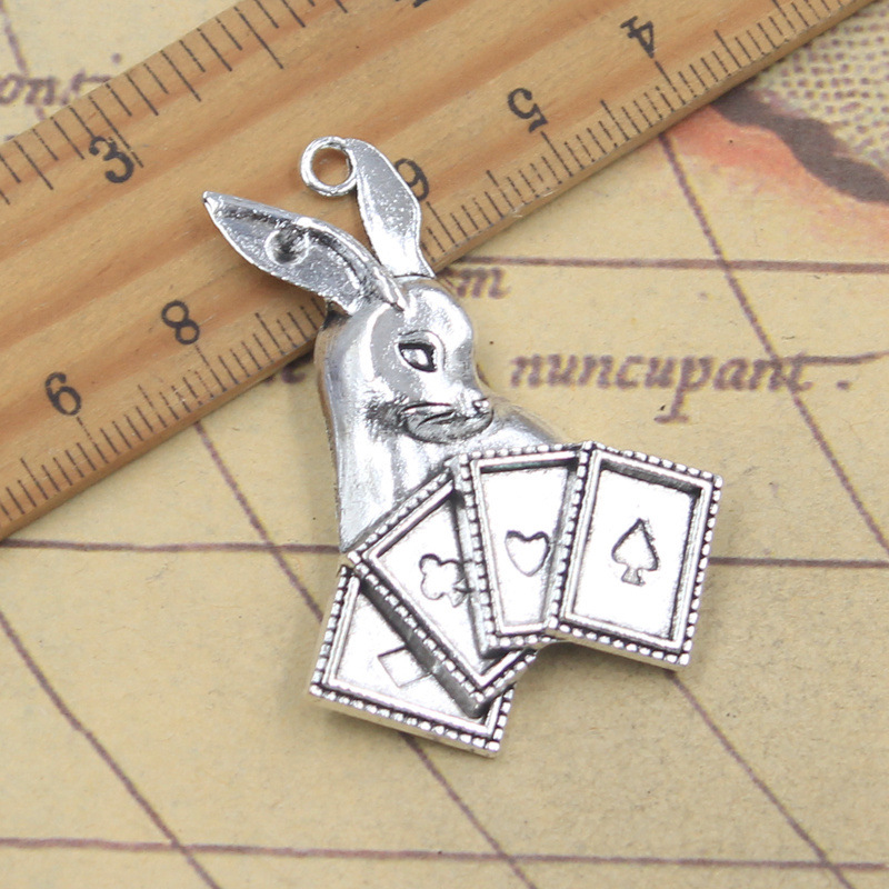古代シルバーウサギトランプ DIY ジュエリーアクセサリーペンダントチャームネックレスブレスレットペンダント