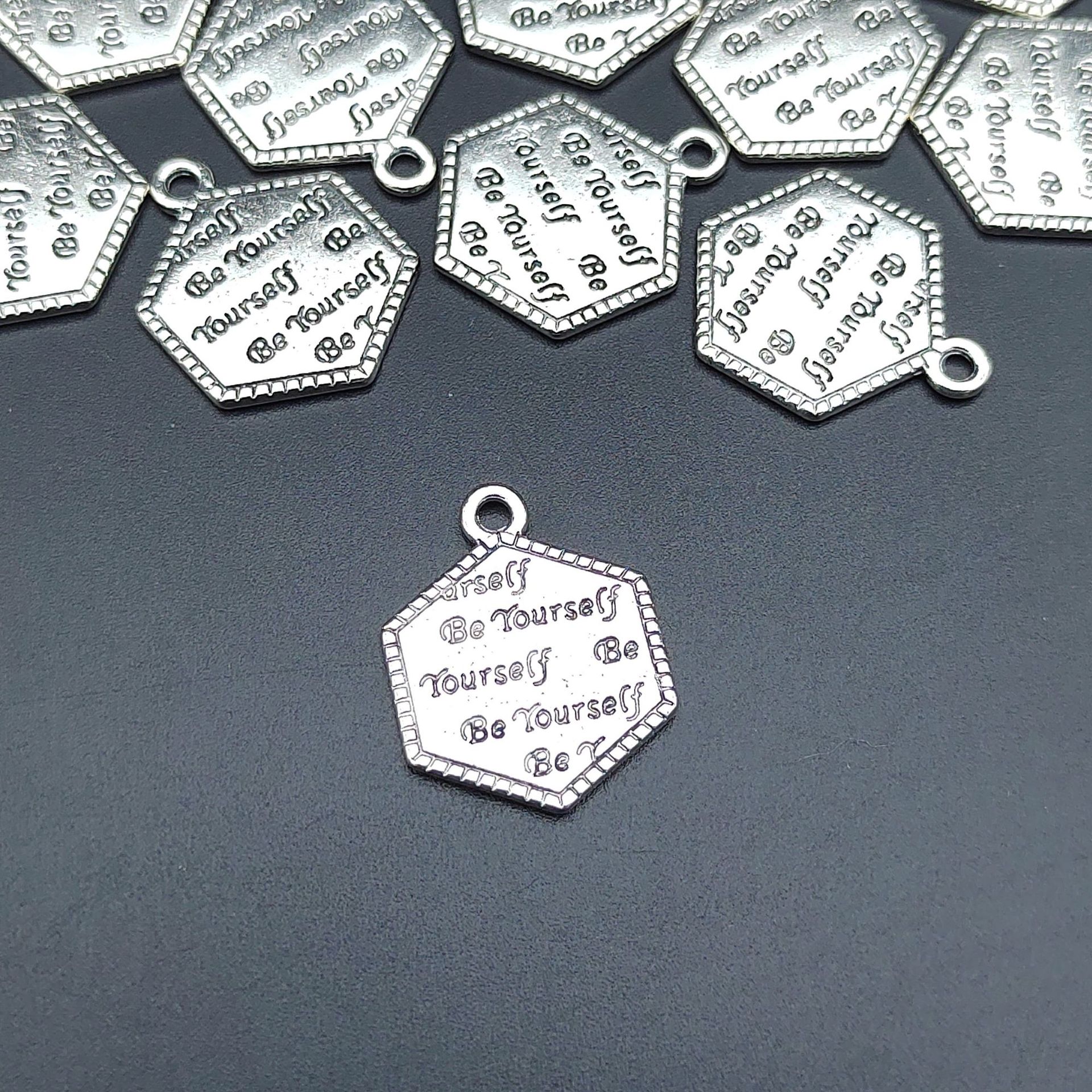 Diyアクセサリー合金アクセサリー六角形彫刻英語タグ耳飾り手作りネックレスブレスレットアクセサリー部品