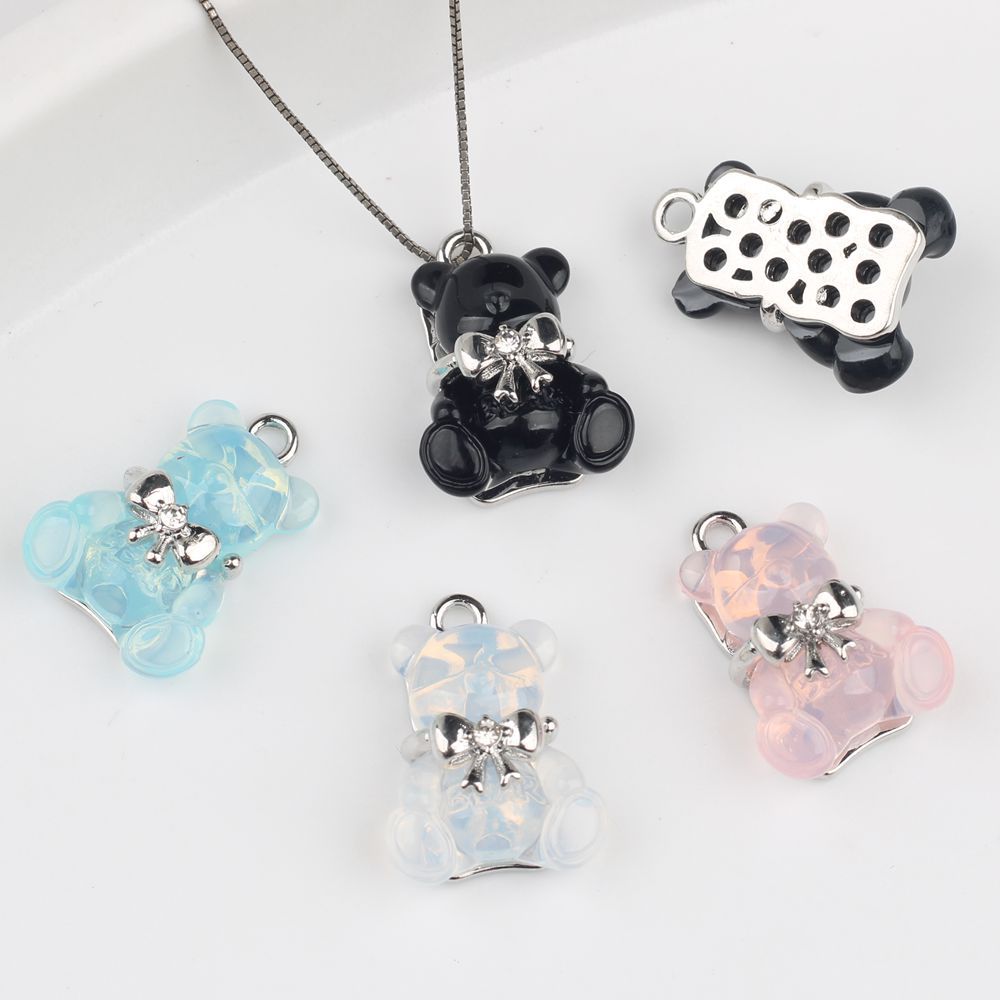 シンプルな合金ホワイトストーン象嵌樹脂クマペンダントペンダント DIY ブレスレットネックレスイヤリングおよびその他のジュエリーアクセサリー