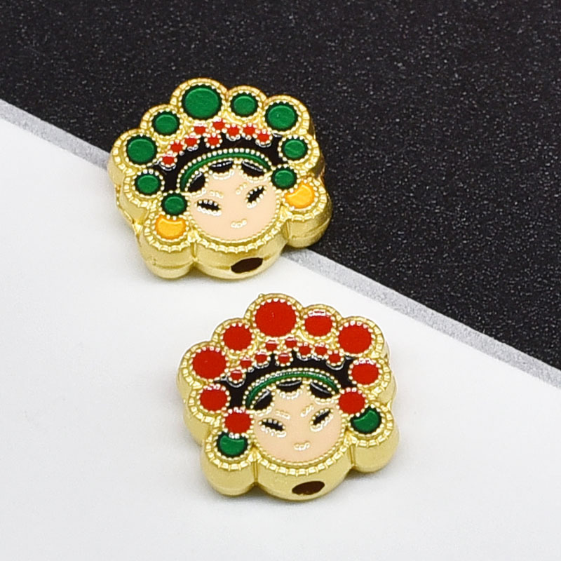 保色沙金京劇の顔譜花旦エナメル輸送ビーズ金メッキ焼藍国潮DIYブレスレット部品卸売り
