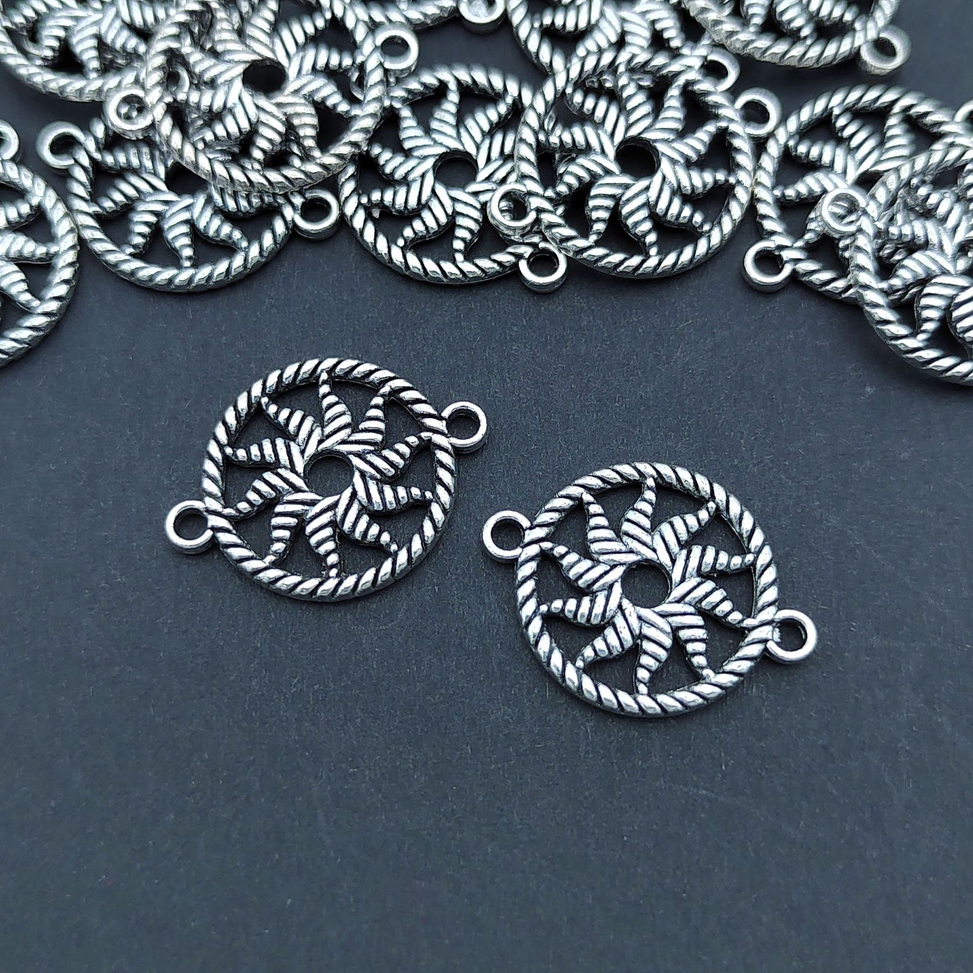 Diyアクセサリーアクセサリーレトロ合金ダブル穴太陽風車ブレスレットネックレスペンダントペンダントコネクタメーカー