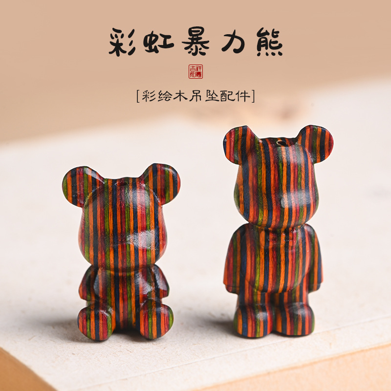 色絵木彫刻虹暴力熊ins風diyデザインかわいいストラップ
