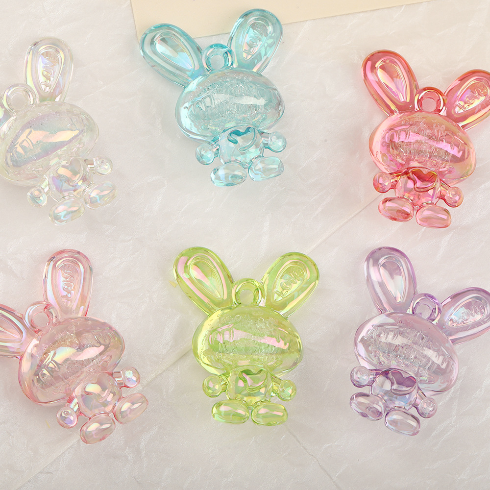 アクリル透明気泡メッキUVロング耳LOVEウサギDIYキーホルダー人形ストラップ生中継アクセサリー部品