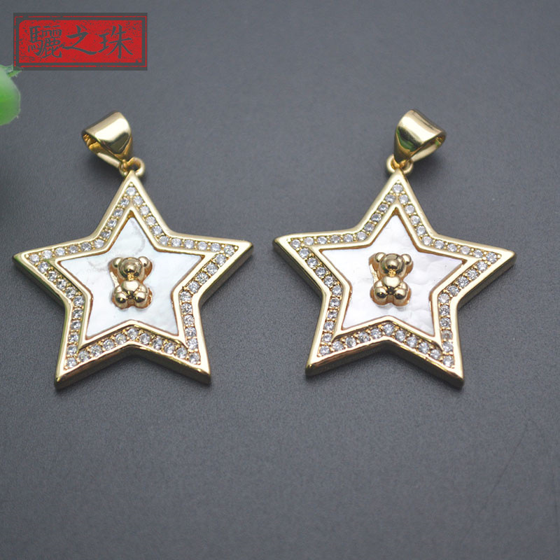 Diyのネックレスの部品のマイクロはジルコンの銅を入れて18kの金の天然の母貝の貝殻の五角星のかわいい熊のペンダントをめっきします。