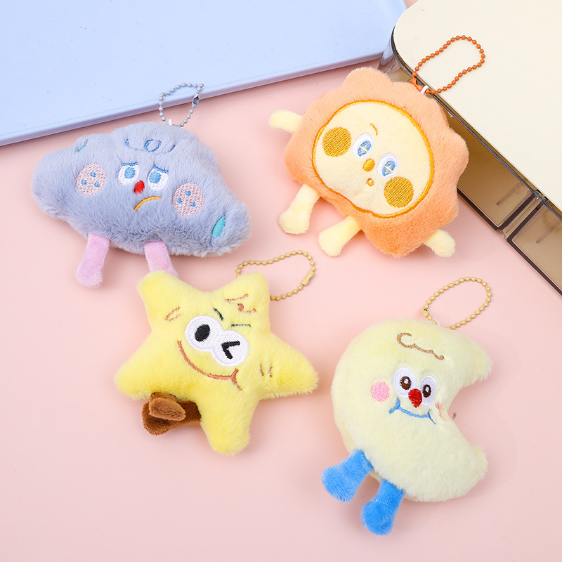 かわいいぬいぐるみ漫画のきしむ人形ギフト、人形付き、星、月、太陽、バッグペンダント、アクセサリー