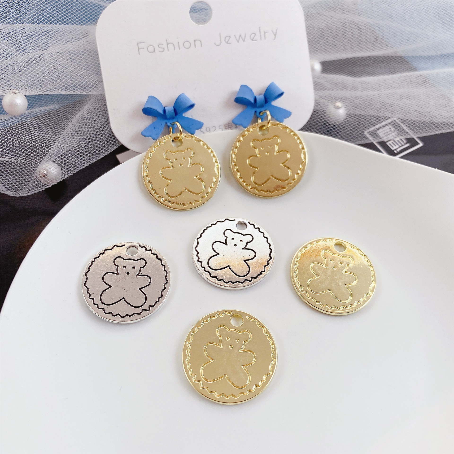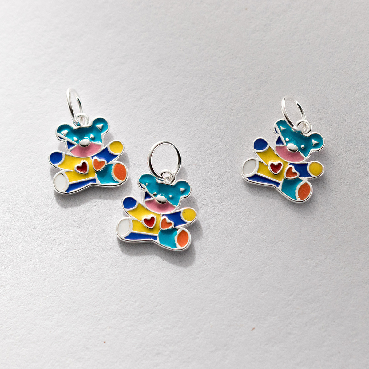 S925シルバーメッキカラードリップゴムセイコーカートゥーン熊ペンダントdiy手串ストラップ手作り編み紐アクセサリーq0733