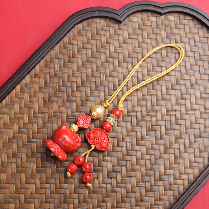 天賜丹朱万山朱砂新商品ペンダントkt猫車は高含有量の赤い砂のキーホルダーを掛けます。