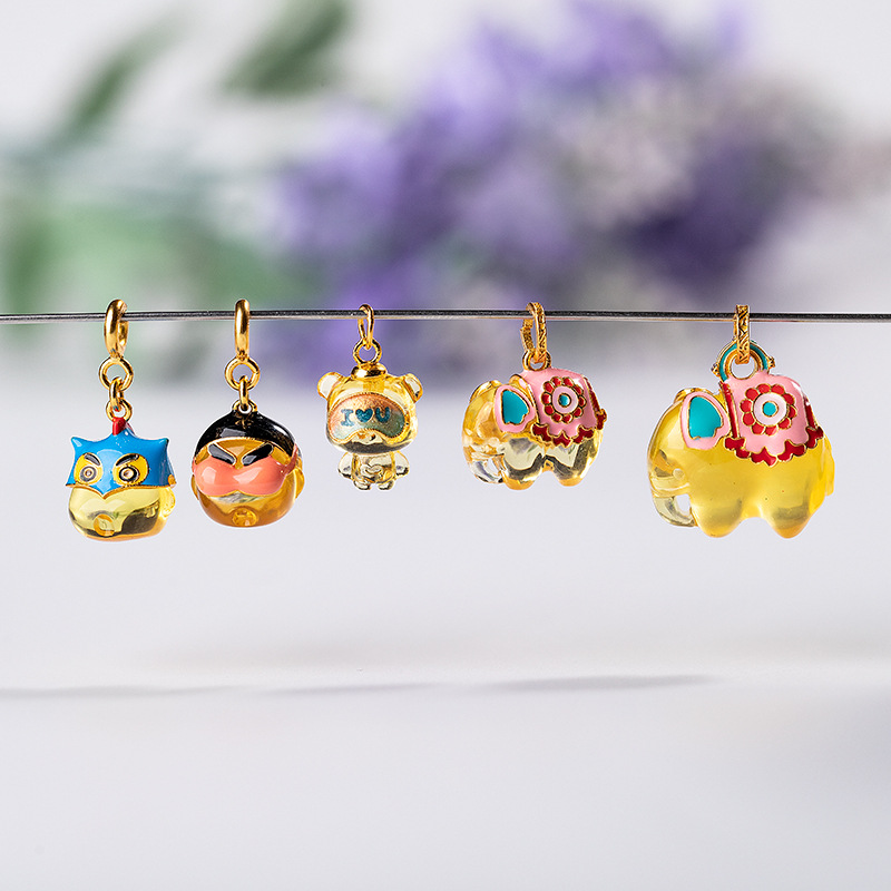 S925銀金メッキ焼青天然琥珀蜜ろう金パー熊クレヨン小新吉象入家ペンダント