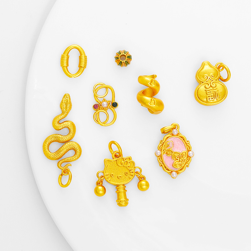 金店の同じタイプの沙金Kitty猫が波を打って肖蛇のペンダントをぶら下げて甘くてかわいい風diy沙金のペンダントを掛けます。