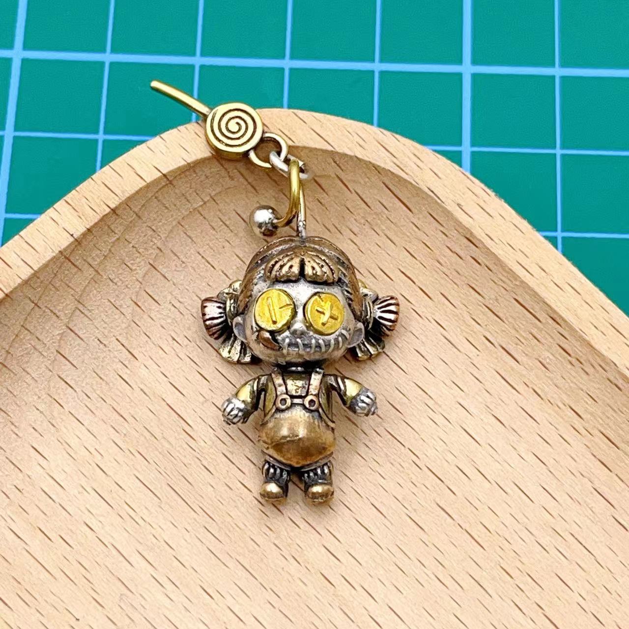 朱砂は本物の人形仏の携帯チェーンのキーホルダーを掛けます。