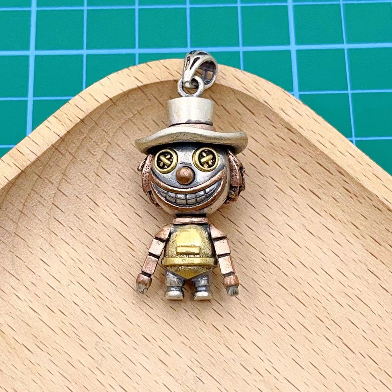 S925純銀かかしペンダント巫逗人形銀飾りレトロペンダントトレンド個性ネックレスペンダント