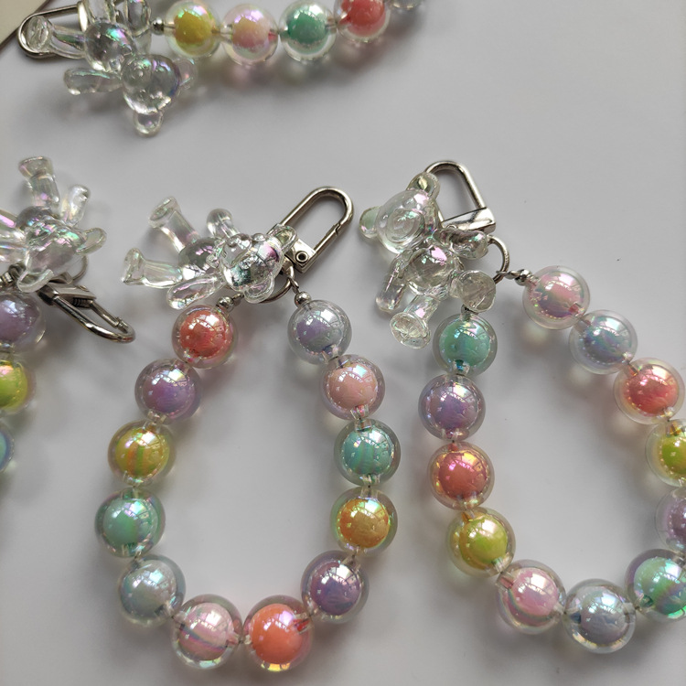 携帯電話のストラップの短いミニストラップの新型insネット赤の女性のマカロン色14m水晶の玉のまぶしい熊