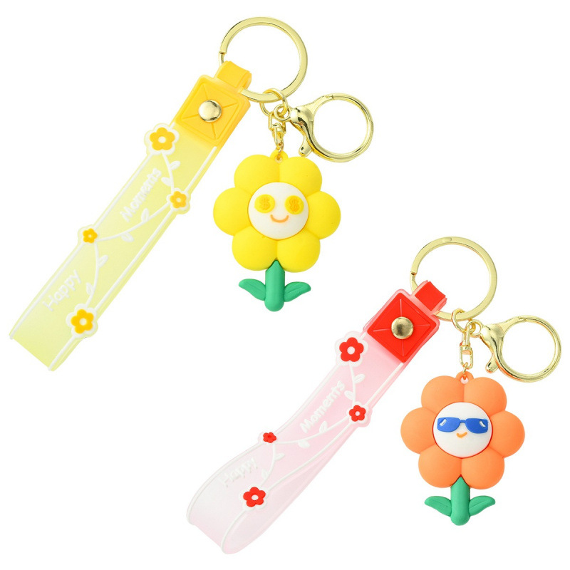 クリエイティブ漫画フラワーストラップキーホルダーかわいい絶妙な樹脂人形キーチェーンリングスクールバッグペンダント小さなギフト