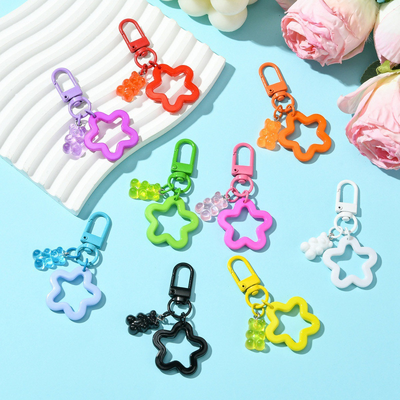 カラフルなクマの五芒星アクリルキーホルダーペンダントヘッドフォンカバーairpodsペンダントかわいいバッグペンダント